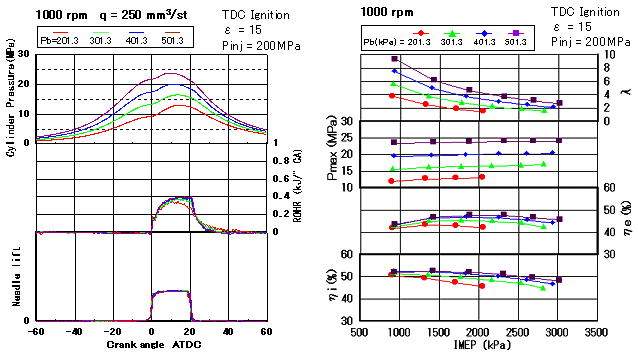 and injection pressure 200-250MPa in our single cylinder engine (bore×stroke:135×140mm),